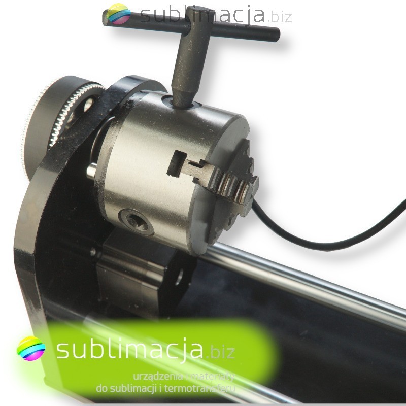 Dzięki systemowi dociskowemu, obrotnica umożliwia grawerowanie na przedmiotach, które mają kształt obrotowy: